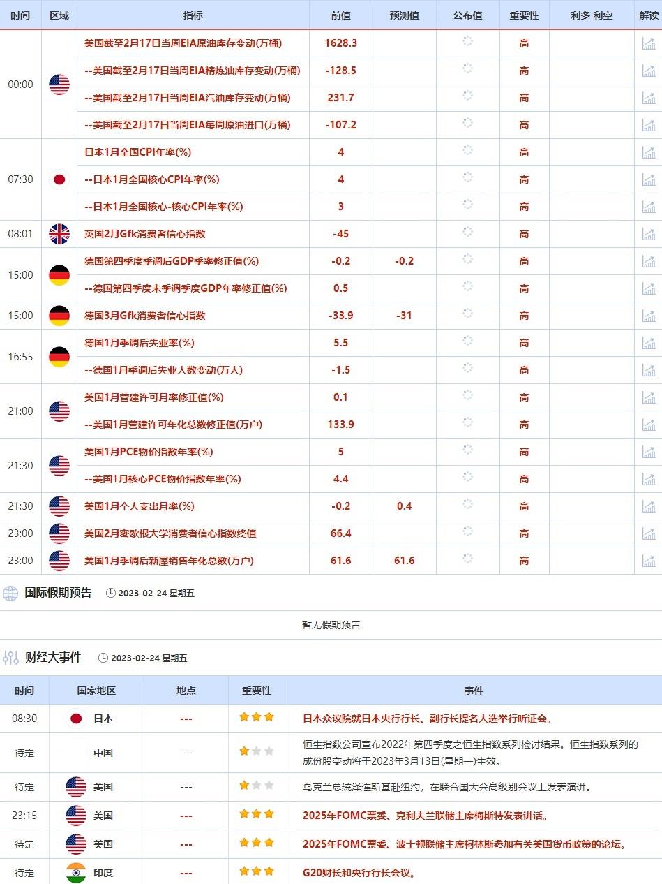 ⑤2月24日(周五)关键字:美国截至2月17日当周EIA原油库存变动,日本1月CPI