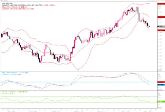 在周四的其他经济数据中,美国劳工部报告称,初请失业金人数小幅下降1000人至19.4万人,低于道琼斯估计的20万人。最近的初请数据几乎保持稳定,并处于历史低位,这是劳动力市场持续紧张的一个迹象。最近的其他经济指标也表明,经济几乎没有放缓的迹象。所以尽管通货膨胀继续缓解,但它仍然处于高位,远远高于美联储2%的目标,这也表明美联储主席鲍威尔的工作还远未结束。克利夫兰联储主席梅斯特周四上午在一次讲话中表示,她希望美联储在1月份的上一次利率委员会会议上表现得更加激进,即美联储需要将基准利率维持在5%以上并维持一段时间,以控制通胀。在PPI等经济数据出炉以及梅斯特发表讲话后,美国国债收益率上升。美国10年期国债收益率升至3.84%,为去年12月30日以来最高水平。美元利率的继续上行且高位停留时间比预期加强,无疑将对黄金施以重重压力。近期应主防黄金的下行风险,留意1800整数心里关口的支撑。短线或会出现超卖调整行情,但现阶段黄金的重新上行似乎较为困难。