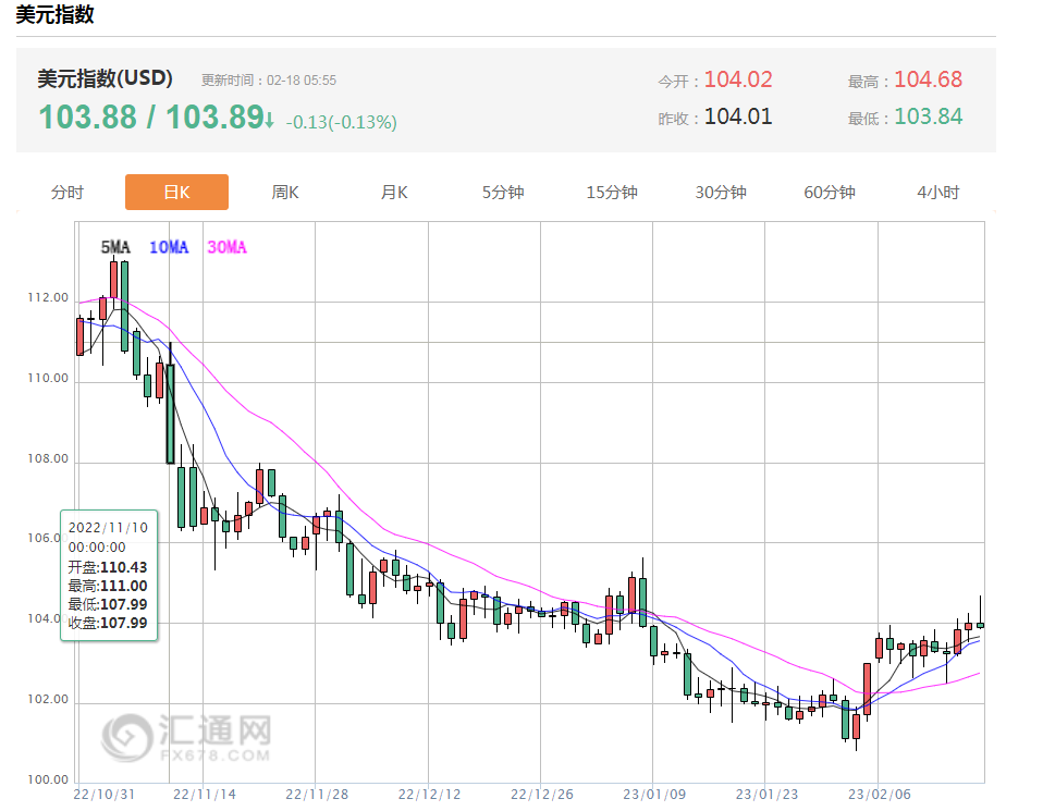 美元指数盘尾下跌0.24%,报103.83,稍早曾触及104.67的1月6日以来最高。