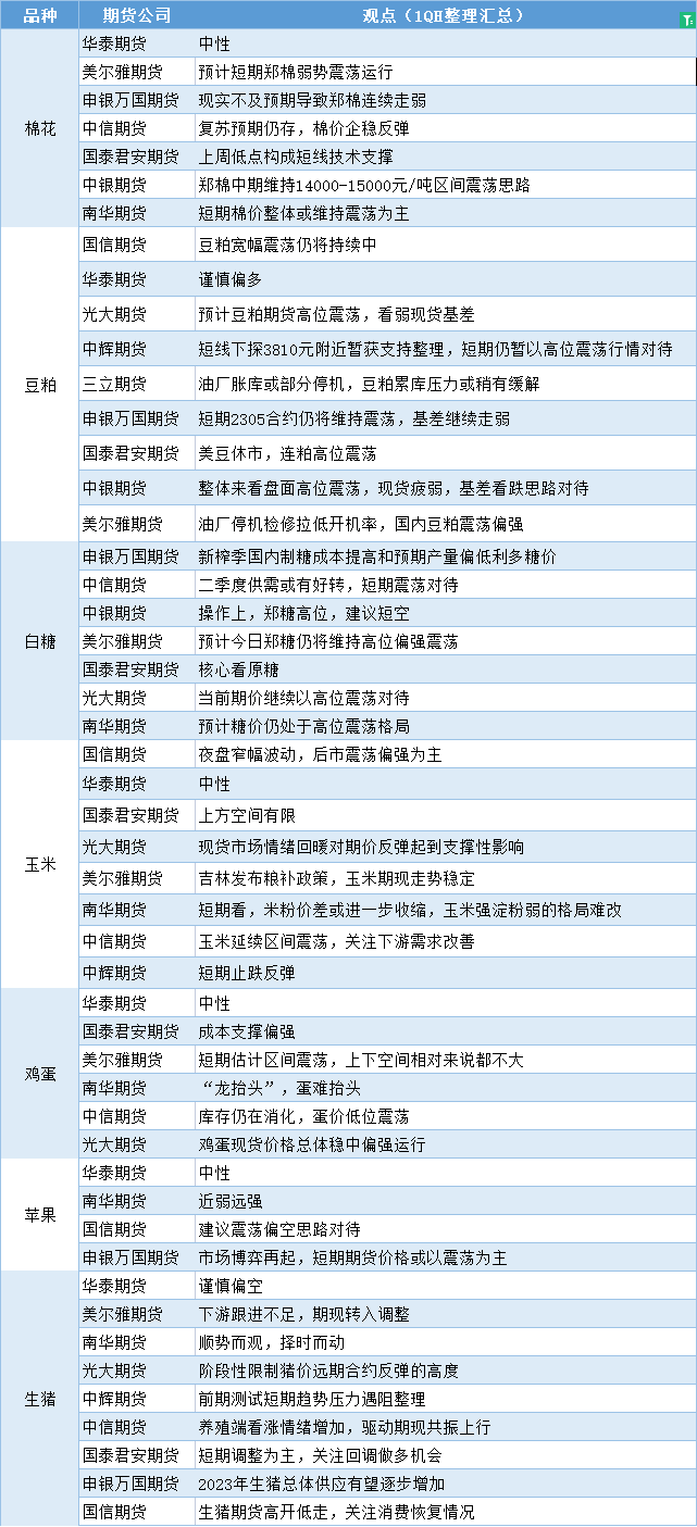汇通财经APP讯——期货公司观点汇总一张图:2月21日农产品(棉花、豆粕、白糖、玉米、鸡蛋、生猪等)