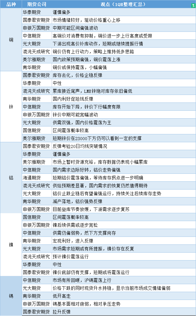 汇通财经APP讯——期货公司观点汇总一张图:2月21日有色系(铜、锌、铝、镍、锡等)