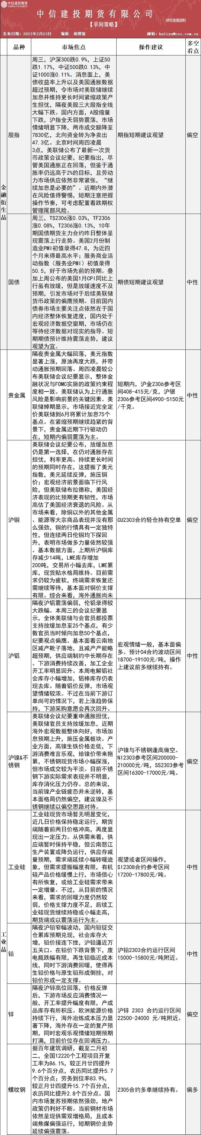 标题:中信建投期货2月23日早间交易策略