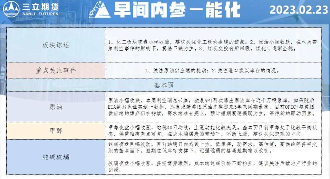 汇通财经APP讯——三立期货早间内参显示,原油短期震荡偏弱为主,甲醇上涨动能比较充足,建议关注宏观方向,玻璃多空博弈激烈。三立期货授权文本由“专注期货开户交易及专业行情分析资讯网站”【一期货 www.1qh.cn】转发。