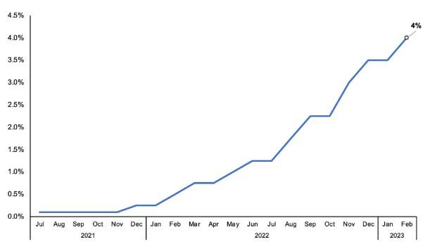 本月早些时候,英国央行在会议上发布了利率决定,声明中的措辞与最近几个月相比有所软化,引发了人们的预期,即该行可能会在3月23日的下一次会议上最后加息25个基点,标志着当前加息周期的结束。