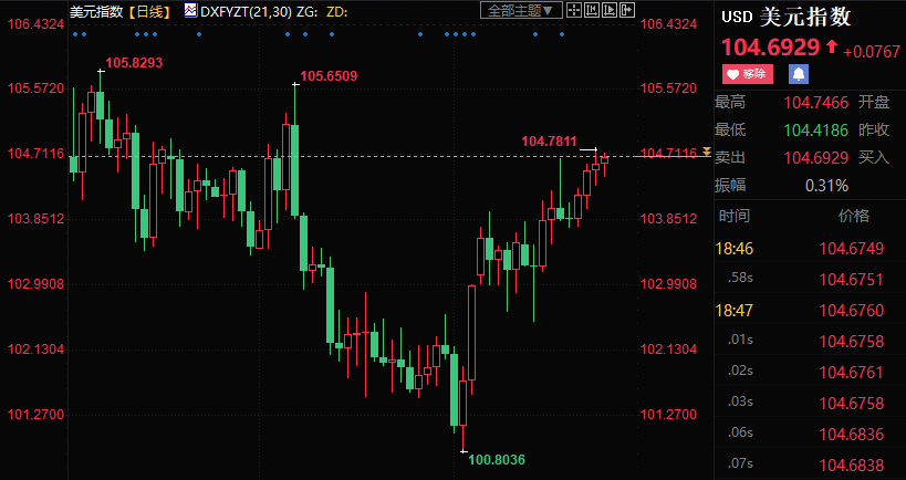 汇通财经APP讯——美联储本周公布上次会议纪要显示,多数决策者决心利用较慢的加息步伐来抑制持续的高通胀,并指出高通胀的风险仍是影响货币政策的一个“关键因素”。这种加息暗示以及一系列强劲经济数据推动美元指数连续第四周上涨,涨幅近0.8%,并创1月6日以来新高至104.781。