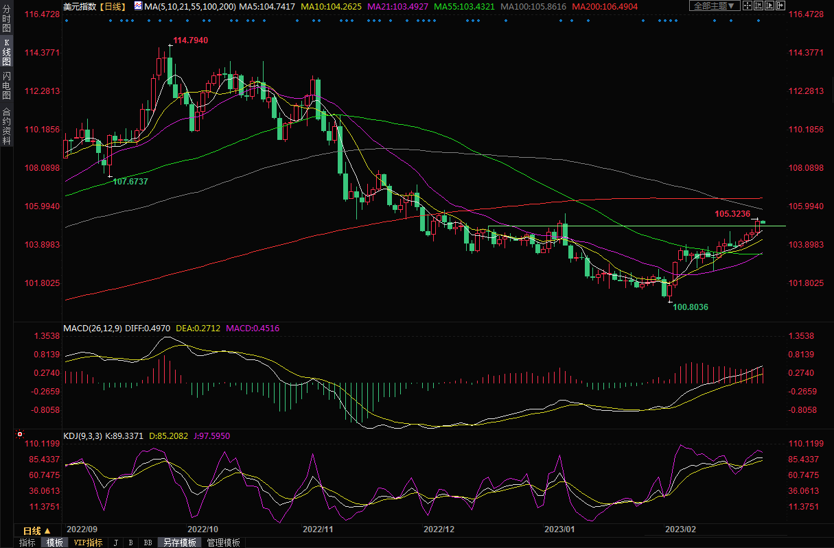 美元指数小幅回落,目前交投于105.10附近,技术面来看,在失守5日均线104.74前,后市偏向多头。