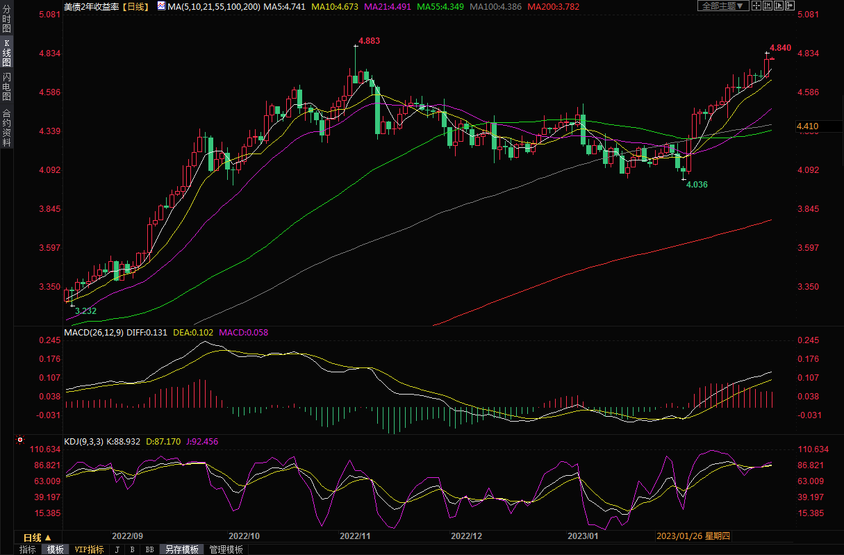 美国债两年期国债收益率触及三个半月最高,因消费者支出和通胀均加速