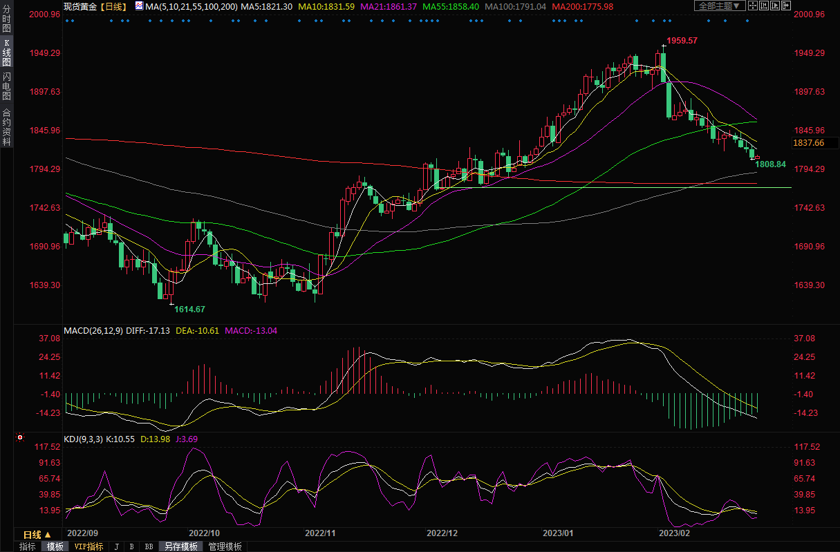 汇通财经APP讯——周一(2月27日)亚洲时段,现货黄金窄幅震荡,目前交投于1813美元/盎司附近。上周五金价持续走弱,一度创近八周新低至1808.84美元/盎司,因为美国1月份PCE强于市场预期,提升了市场对美联储更高终端利率的预期,美元指数创近七周新高,美债收益率连续第五周上涨,而且多位美联储官员继续发表鹰派讲话,对金价打压明显。