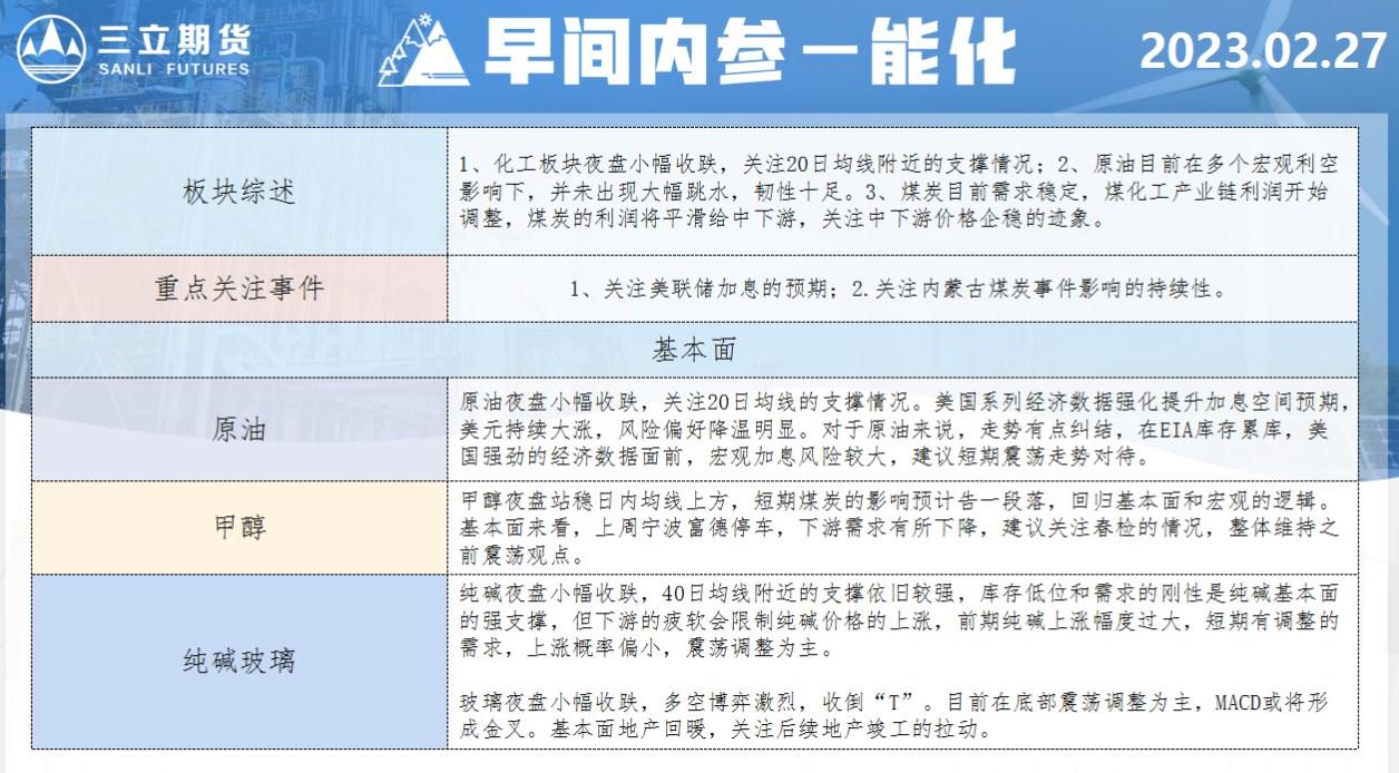 标题:三立期货2月27日早间内参——能化