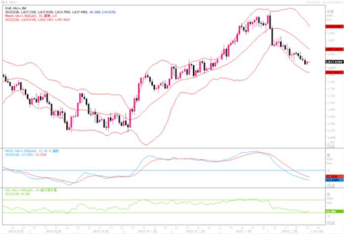 隔夜,美国公布1月耐用品订单环比超预下跌4.5%,创32个月来最大降幅,据悉飞机航空相关订单大幅下滑54.6%拖累数据走弱,但扣除飞机的非国防资本核心耐用品订单增长0.8%,为5个月来最大增幅,在经济前景存在隐忧的情况下,反映部分企业仍愿意做中长期投资。数据使强势美元戛然而止,盘中触及105.35的高位后拐头回落,当天跌0.55%,美债收益率亦同步回落,黄金价格则探底略作回升。近阶段,美国强势就业和顽固通胀数据反映经济仍存在支撑,消费数据回升也进一步印证这一事实,市场对弱预期的交易持续面临纠正。此外美联储官员陆续发表讲话仍强调通胀压力的偏鹰表态使市场重新定价货币政策的线路,6月将继续加息的概率上升。在美国通胀未能见到显著回落的大逻辑下美元指数和美债收益率将有支撑,3月美联储将迎来利率决议,在利空落地前预料黄金价格仍持续承压,金价将有进一步向1800美元回踩的压力。