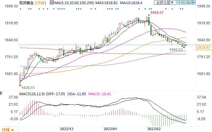 现货黄金已经从1959.57美元的2月初高点跌至目前的1817.35附近。