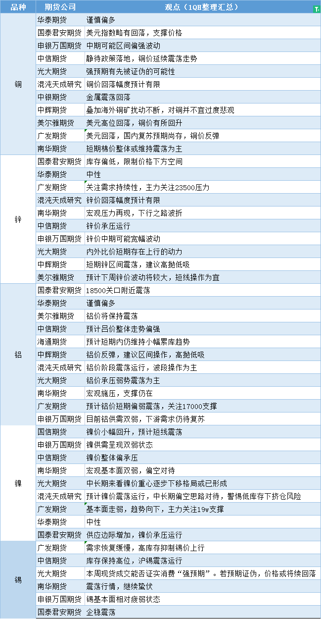 标题:期货公司观点汇总一张图:2月28日有色系(铜、锌、铝、镍、锡等)