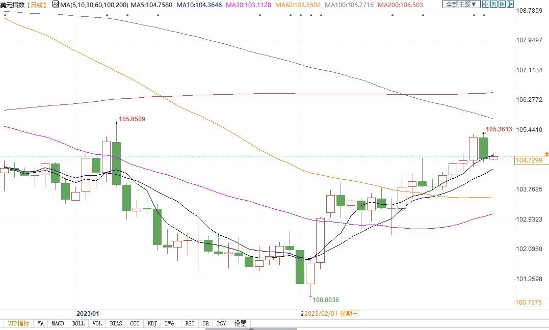 北京时间2月28日10:30,美元指数报104.73