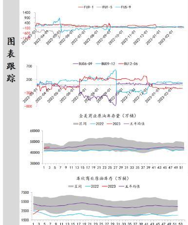 供应端:据美国能源信息署最新数据显示,截止2023年2月17日当周,包括战略储备在内的美国原油库存总量85062万桶,比前一周上升765万桶;美国商业原油库存47904万桶,比前一周上升765万桶;战略原油库存量37158万桶,与上期持平;美国汽油库存总量24007万桶,比前一周下降185万桶。商业原油库存比去年同期高15.15%,比过去五年同期高9.09%;汽油库存比去年同期低2.60%,比过去五年同期低约5.40%;馏分油库存比去年同期低1.89%,比过去五年同期低12.35%。