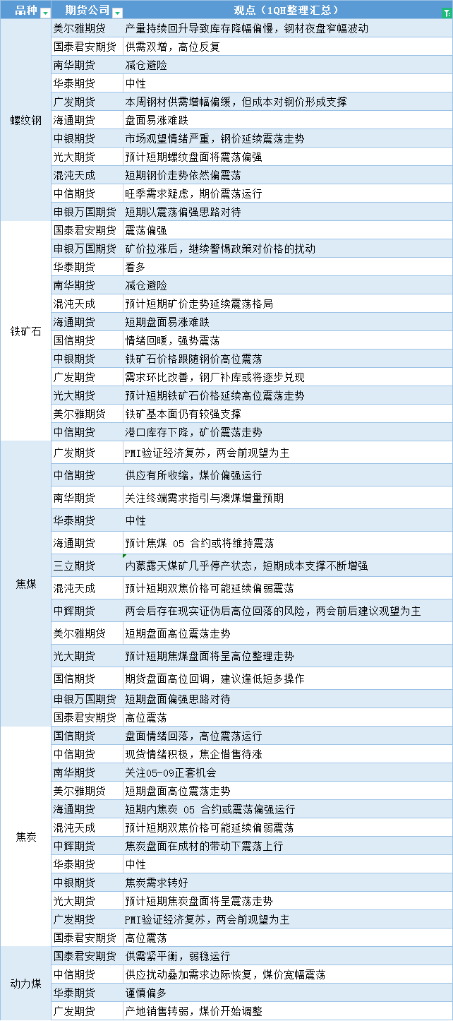标题:期货公司观点汇总一张图:3月3日黑色系(螺纹钢、焦煤、焦炭、铁矿石、动力煤等)