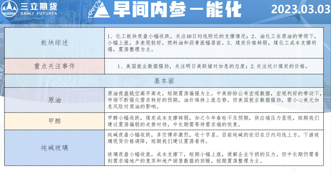 标题:三立期货3月3日早间内参——能化