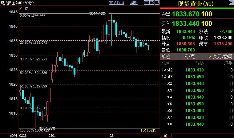 现货黄金短线下看1825美元