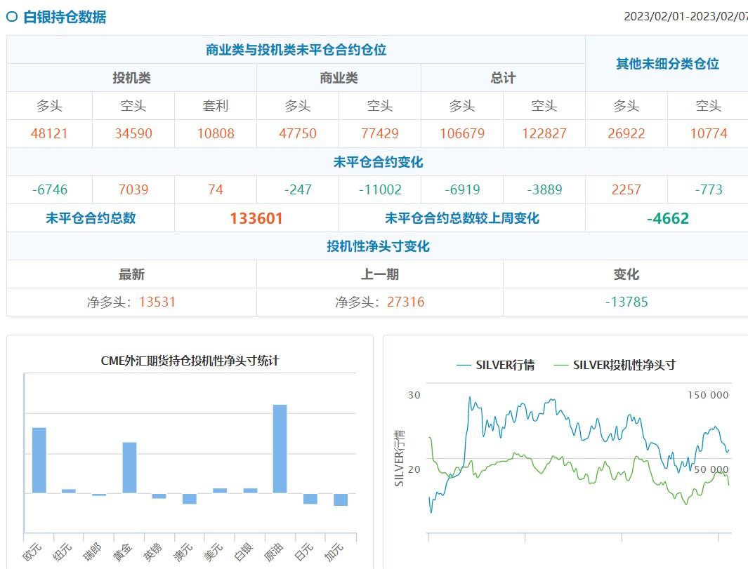 贵金属方面:截至2月7日当周,COMEX黄金投机者将净多头头寸减少31466手,至128815手;白银投机者将净多头头寸减少13785手,至13531手。