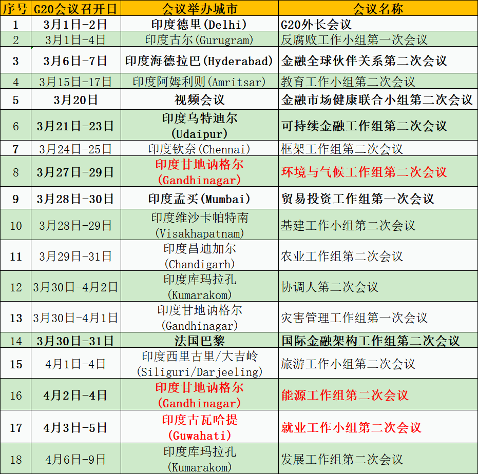 标题:G20会议日程表一览(更新至4月9日):聚焦就业、能源和环境议题