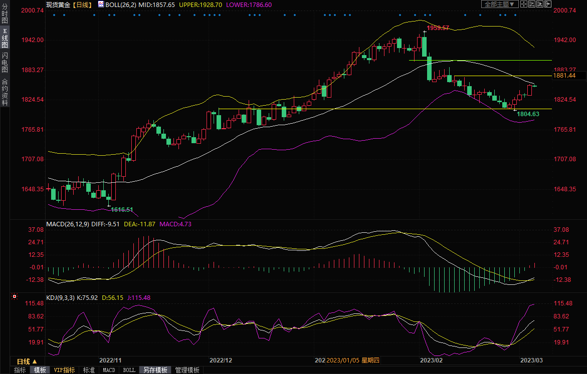 汇通财经APP讯——周一(3月6日)亚市盘初,现货黄金震荡微跌,目前交投于1851.73美元/盎司附近,主要受到短线技术面的回调压力。上周四美联储大鹰派博斯蒂克坚持未来将保持25点的加息步伐,其他美联储官员上周五也没有传递3月份加息50个基点的信号,市场3月份加息50个基点的预期降温,即使美国2月份ISM非制造业PMI数据表现靓丽,但美债收益率仍录得2月2日以来最大单日跌幅,美元指数也震荡走弱,给金价提供上涨动能,上周金价大涨2.44%,为近七周最大涨幅。