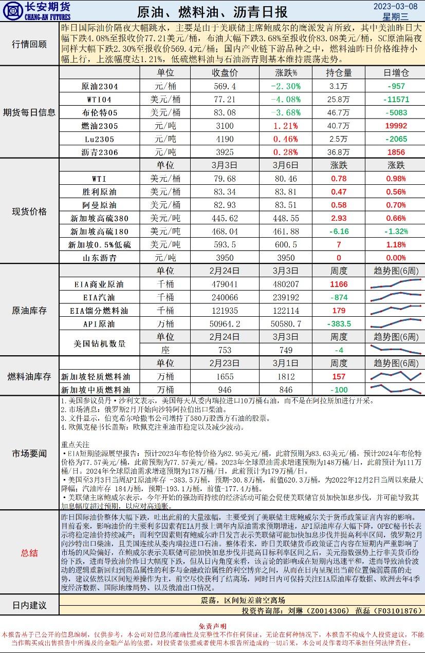 汇通财经APP讯——3月8日,长安期货发布原油早评,认为原油将宽幅震荡,区间短差前空离场。 长安期货公司授权文本由“专注期货开户交易及专业行情分析资讯网站”:【一期货 www.1qh.cn】转发