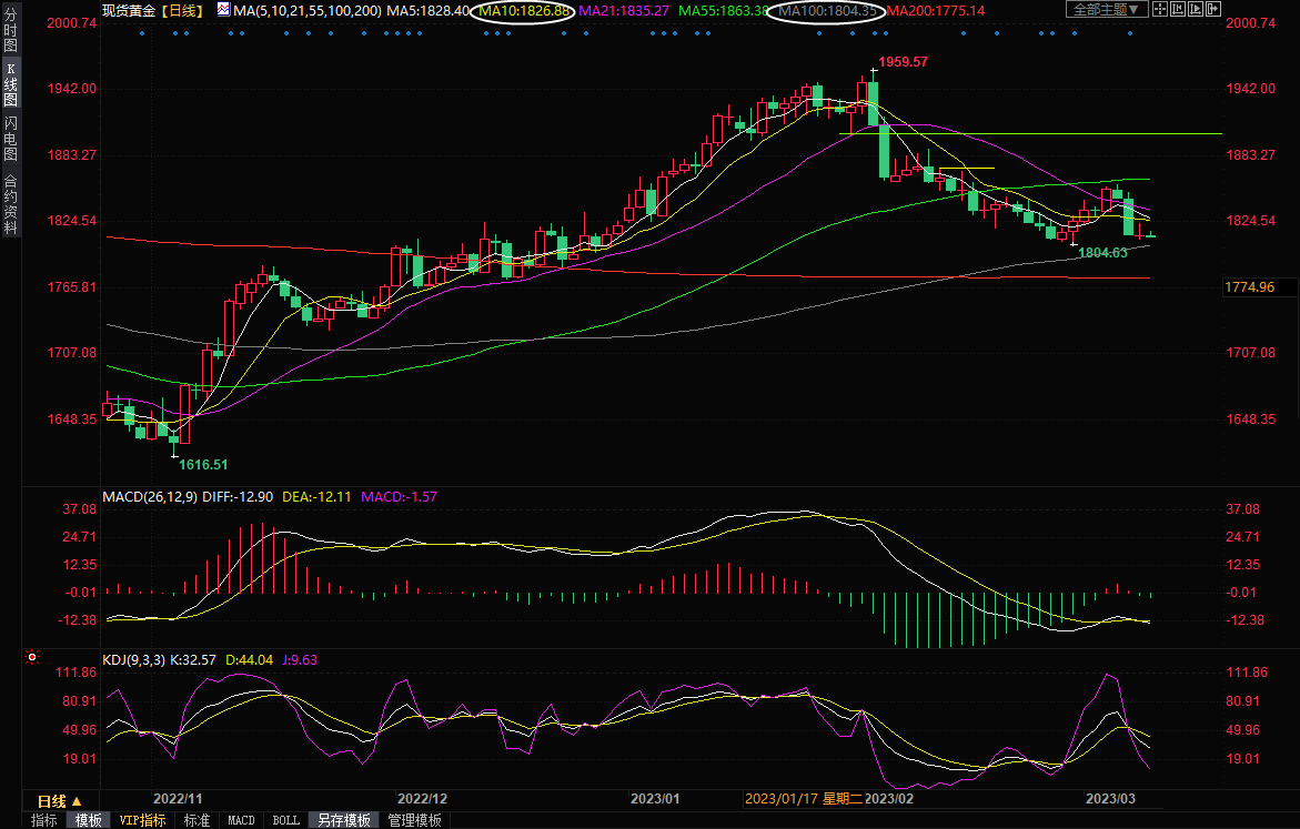 投资者普遍等待周五出炉的美国2月份非农就业报告,市场观望情绪较浓,预计短线金价偏向低位震荡调整,甚至存在一些温和反弹的机会。但利率期货显示,美联储3月份加息50个基点的概率已经接近80%,料将限制金价的反弹空间,并令金价面临进一步下探风险。短线留意1804-1826区域突破情况,分别是100日均线支撑和10日均线阻力。