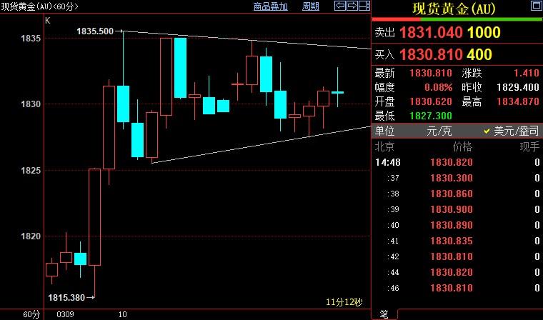 汇通财经APP讯——周五(3月10日),国际金价基本持稳,波动幅度不到10美元,投资者期待当天晚些时候即将公布的美国非农就业报告,以预测美联储可能的加息路径。金价短期内将运行在1828美元和1835美元区间。