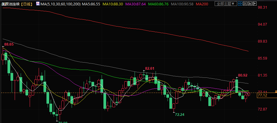 美原油现报77.11美元/桶。