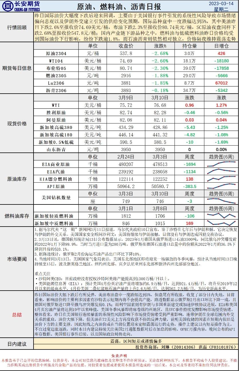汇通财经APP讯——3月14日,长安期货发布原油早评,认为原油价格将震荡,建议区间短差或谨慎偏多。长安期货公司授权文本由“专注期货开户交易及专业行情分析资讯网站”:【一期货 www.1qh.cn】转发