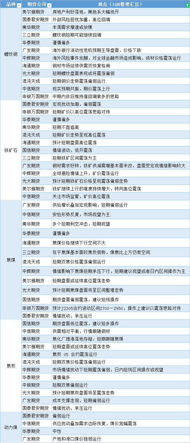标题:期货公司观点汇总一张图:3月16日黑色系(螺纹钢、焦煤、焦炭、铁矿石、动力煤等)