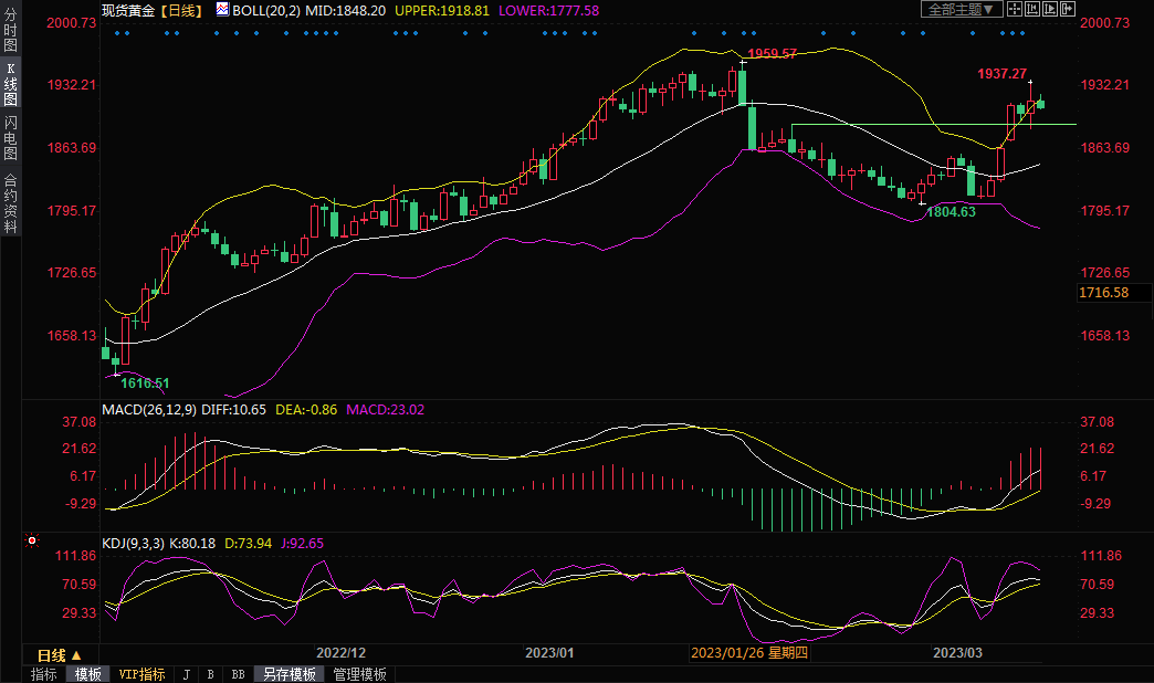 整体来看,对欧美国家银行业危机的担忧料将继续给金价提供避险支撑,而对美联储、欧洲央行、英国央行暂停加息的预期也有所升温,也偏向利多金价,金价后市仍有进一步冲高机会,分别关注隔夜高点1937和2月份高点1960关口附近阻力。北京时间10:34,