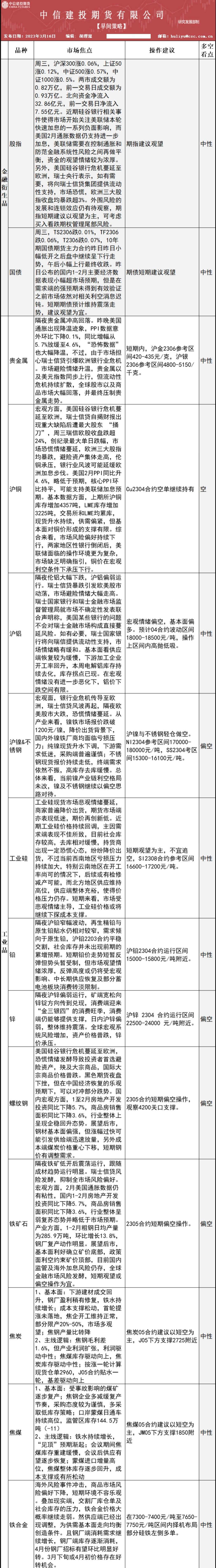 标题:中信建投期货3月16日早间交易策略
