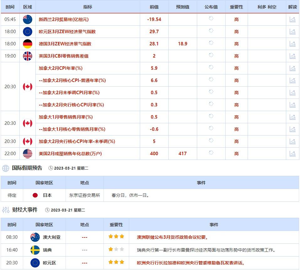 ②3月21日(周二)关键字:欧元区和德国3月ZEW经济景气指数,澳洲联储公布3月货币政策会议纪要
