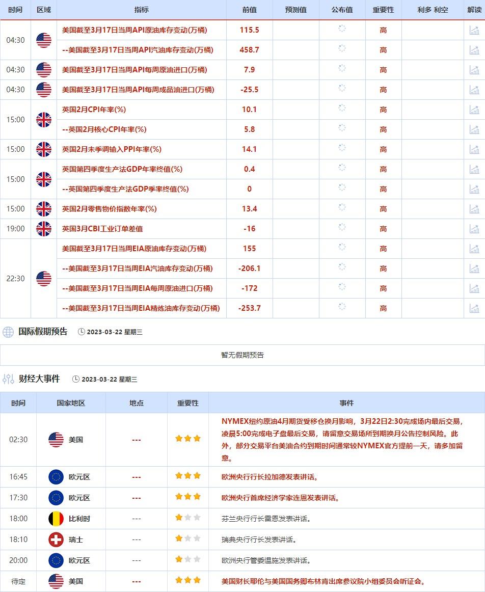 ③3月22日(周三)关键字:英国2月CPI,美国截至3月17日当周API和EIA原油库存变动