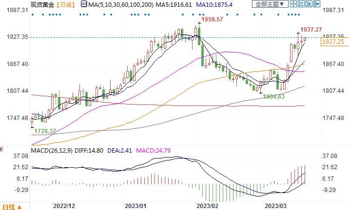 北京时间3月17日11:23,现货黄金报1927.74美元/盎司