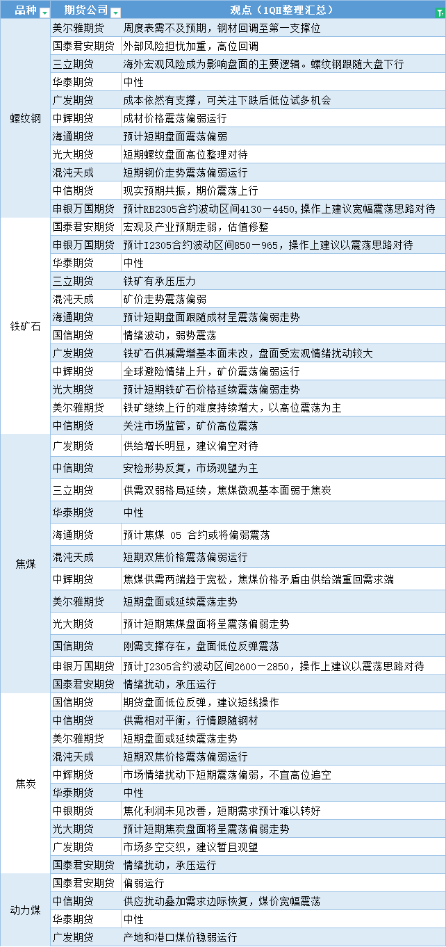 标题:期货公司观点汇总一张图:3月17日黑色系(螺纹钢、焦煤、焦炭、铁矿石、动力煤等)