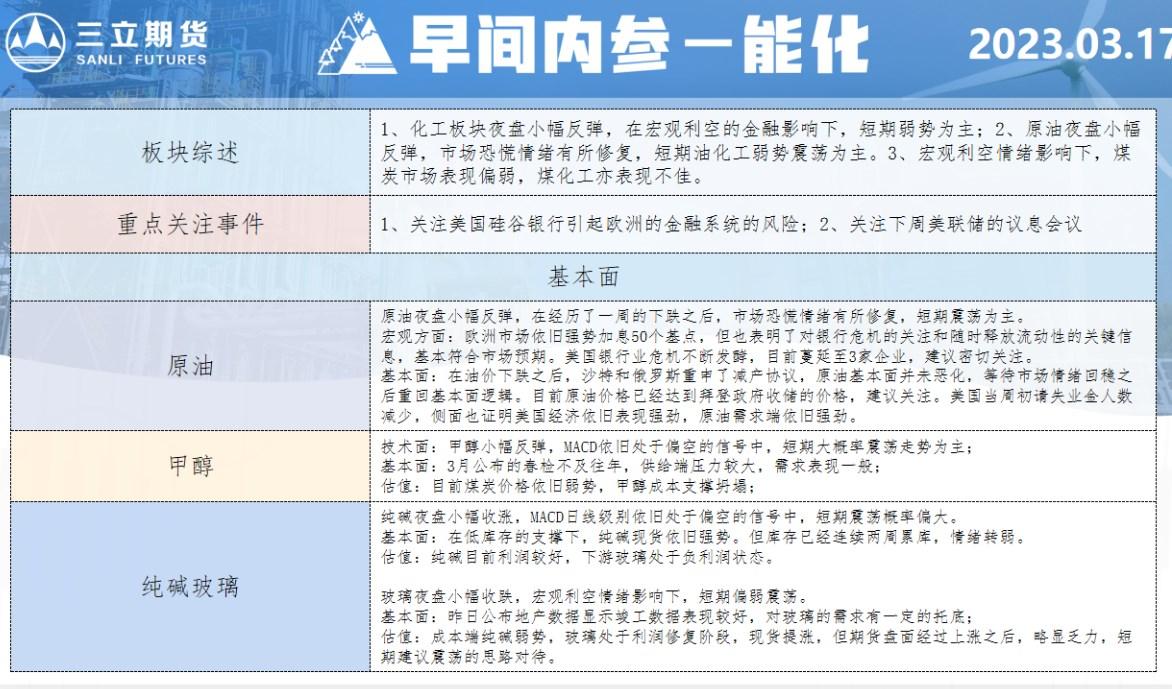 标题:三立期货3月17日早间内参——能化