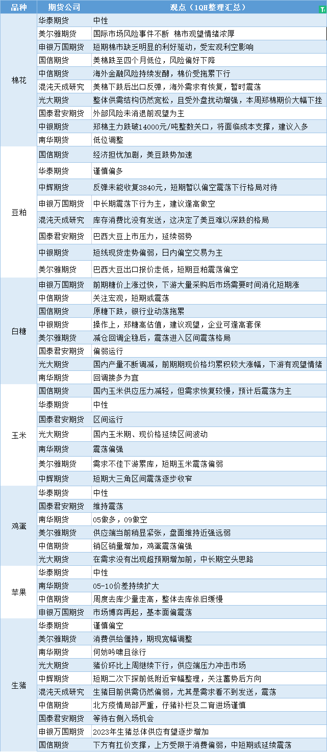 汇通财经APP讯——期货公司观点汇总一张图:3月20日农产品(棉花、豆粕、白糖、玉米、鸡蛋、生猪等)