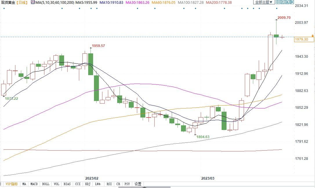北京时间3月21日10:18,现货黄金报1979.53美元/盎司