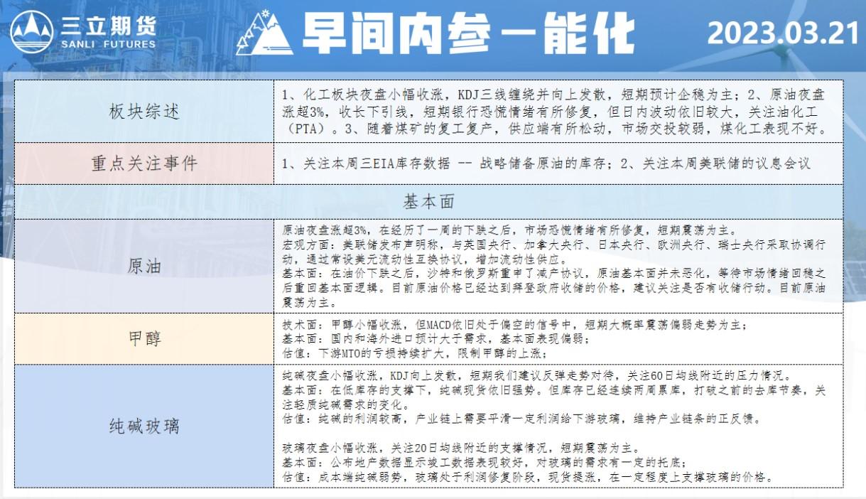 汇通财经APP讯——三立期货早间内参显示,原油短期震荡为主;甲醇短期大概率震荡偏弱走势为主;玻璃短期震荡为主。三立期货授权文本由“专注期货开户交易及专业行情分析资讯网站”【一期货 www.1qh.cn】转发。