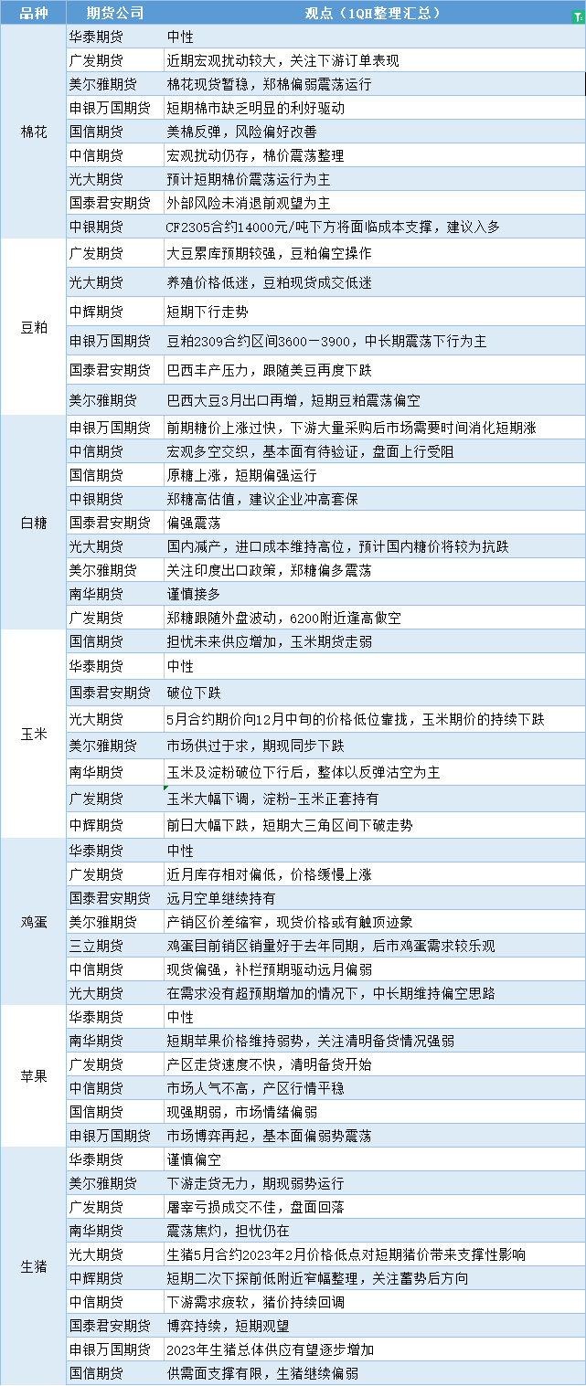 汇通财经APP讯——期货公司观点汇总一张图:3月22日农产品(棉花、豆粕、白糖、玉米、鸡蛋、生猪等)