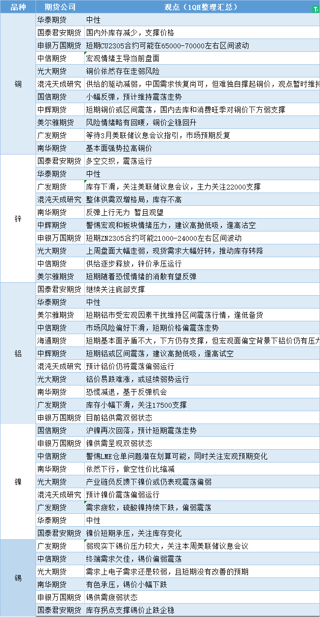 标题:期货公司观点汇总一张图:3月22日有色系(铜、锌、铝、镍、锡等)