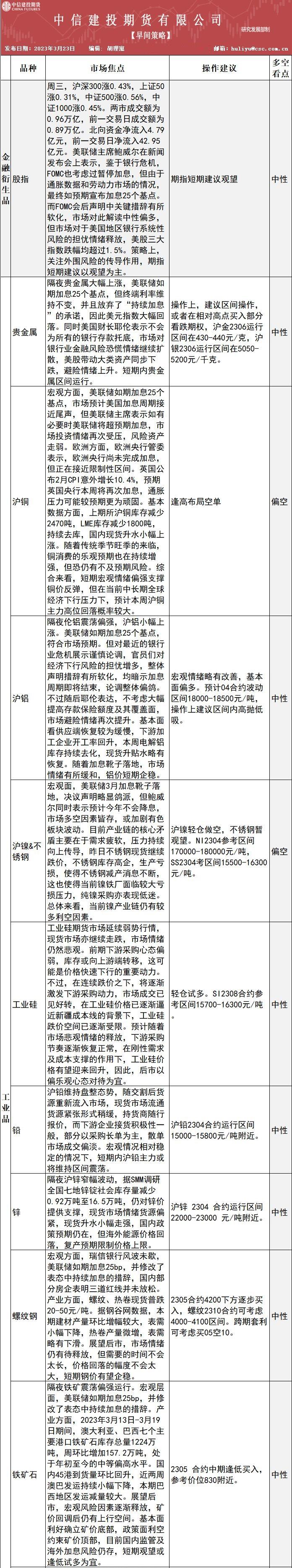 美联储加息25个基点,美国不会对银行存款进行全面保险的宏观事态发展也扰动油价,目前银行业危机尚未传导到实体,贸易巨头已经在商讨这种可能性,因银行在经济社会中的重要地位,银行业危机不消除,油价趋势上涨难度仍较大,投资者以震荡思路对待,危机不恶化的前提下俄罗斯减产封闭了下行空间。