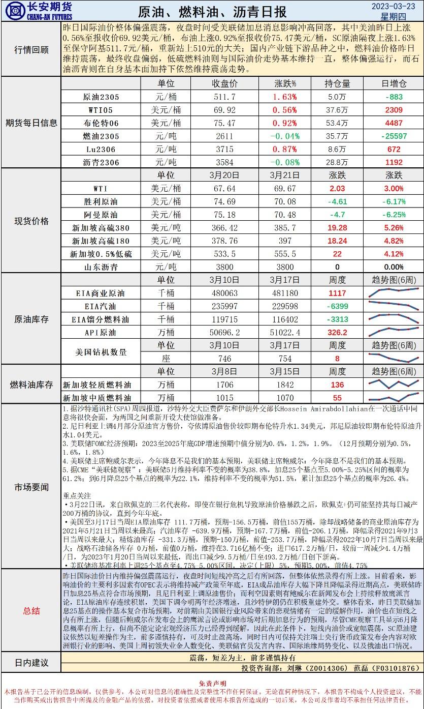 汇通财经APP讯——3月23日,长安期货发布原油早评,称25基点如期而至,鲍威尔鹰派言论或限制涨幅,认为价格将震荡,建议短差为主,前多谨慎持有。 长安期货公司授权文本由“专注期货开户交易及专业行情分析资讯网站”:【一期货 www.1qh.cn】转发