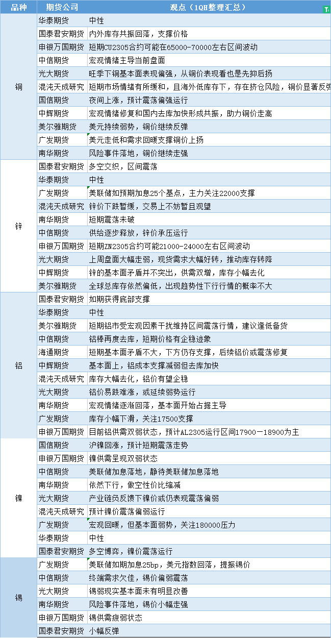 标题:期货公司观点汇总一张图:3月24日有色系(铜、锌、铝、镍、锡等)