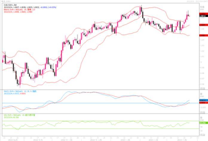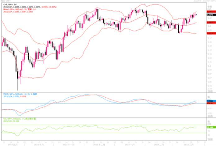周四(3月23日)英镑兑美元上涨0.13%,至1.2284。 英国央行周四将利率再提高25个基点至4.25%,并保持其指引不变,即货币政策委员会认为继续快速加息的紧迫性不大。英国央行决策者对该国的经济前景更加乐观。在九位政策制定委员会委员中,七位赞成加息25个基点,两位反对。虽然英央行继续加息25个基点,但鉴于通胀将开始降温的预期,英国央行似乎仍热衷于暂停加息。因此加息消息并未能出现刺激英镑飙升的行情出现。日线图上,英镑兑美元继续维持在靠近1.23近期高点附近,日线图上的技术指标维持温和的摆动,指向性仍是不太明朗。若上方能彻底穿越1.23,则镑美有望高攀一线。但遇阻回落的话,下方的支撑还要看看1.19之上的力度如何。
