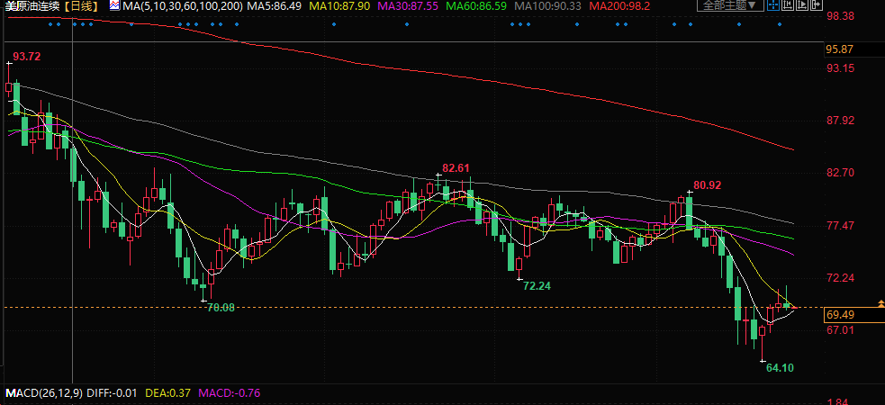 汇通财经APP讯——3月24日(周五)亚市盘初,美油交投于69.32美元/桶附近;油价周四收低,扭转了早些时候的涨势,此前美国能源部长格兰霍姆告诉立法者,重新填满该国的战略石油储备(SPR)可能需要几年时间,加剧了人们对潜在供应过剩的担忧。但地缘局势和美联储暂停加息预期,美股上涨限制了油价跌幅。