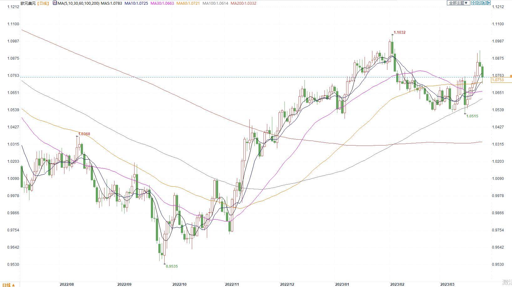 美元指数本周探底回升整体势将收跌,美联储放缓加息的预期施压美元在本周初下跌,此后美联储加息靴子落地,美元释然回升。欧美银行业危机的担忧也支持了美元