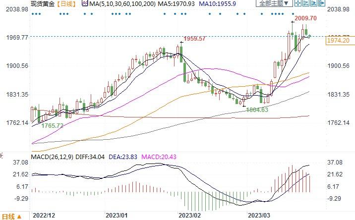 北京时间3月27日10:25,现货黄金报1976.40美元/盎司