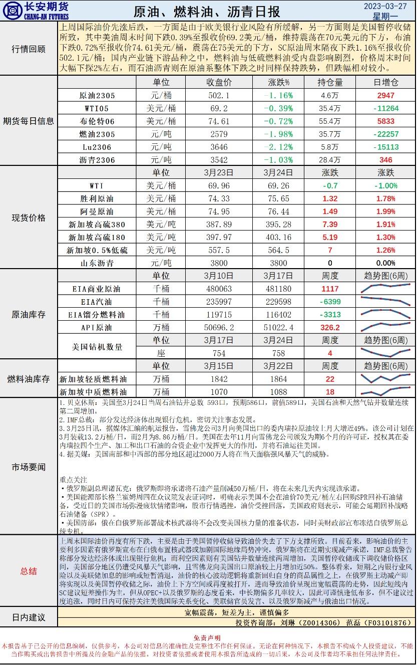 汇通财经APP讯——3月27日,长安期货发布原油早评,认为原油将宽幅震荡,建议短差为主,谨慎偏多。 长安期货公司授权文本由“专注期货开户交易及专业行情分析资讯网站”:【一期货 www.1qh.cn】转发